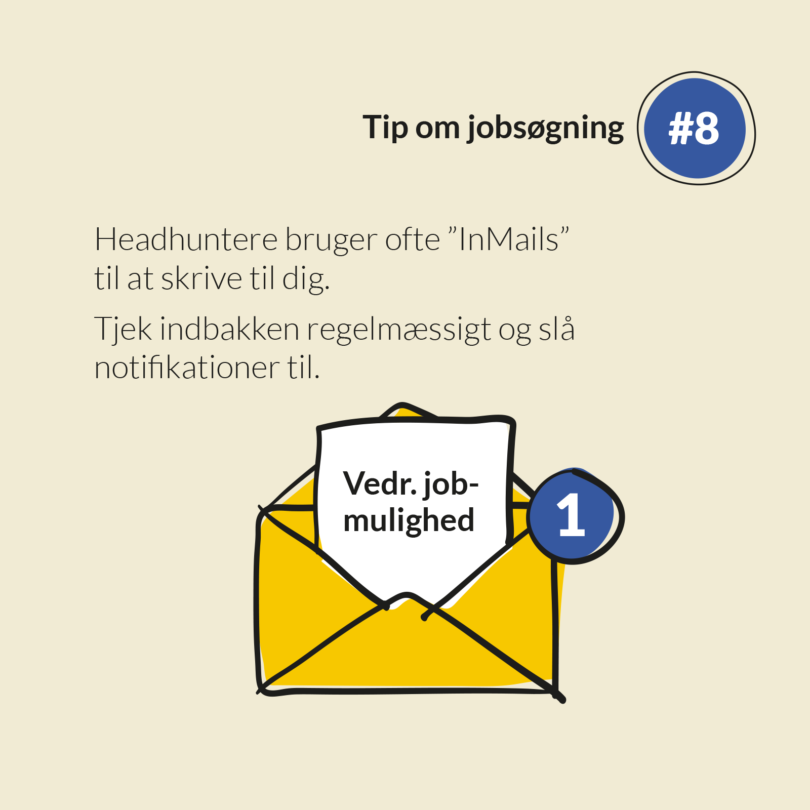 Er du på LinkedIn, så husk at slå notifikationer til, så du ser, at der er kommet en besked til dig. Det fungerer på samme måde som du måske kender det fra Facebook og Messenger. Hvis vi ikke kan finde et telefonummer på dig, er det meget almindeligt, at vi sender en besked via LinkedIn. Jeg oplever ofte, at beskeder først åbnes adskillige dage efter, og så er det måske for sent.