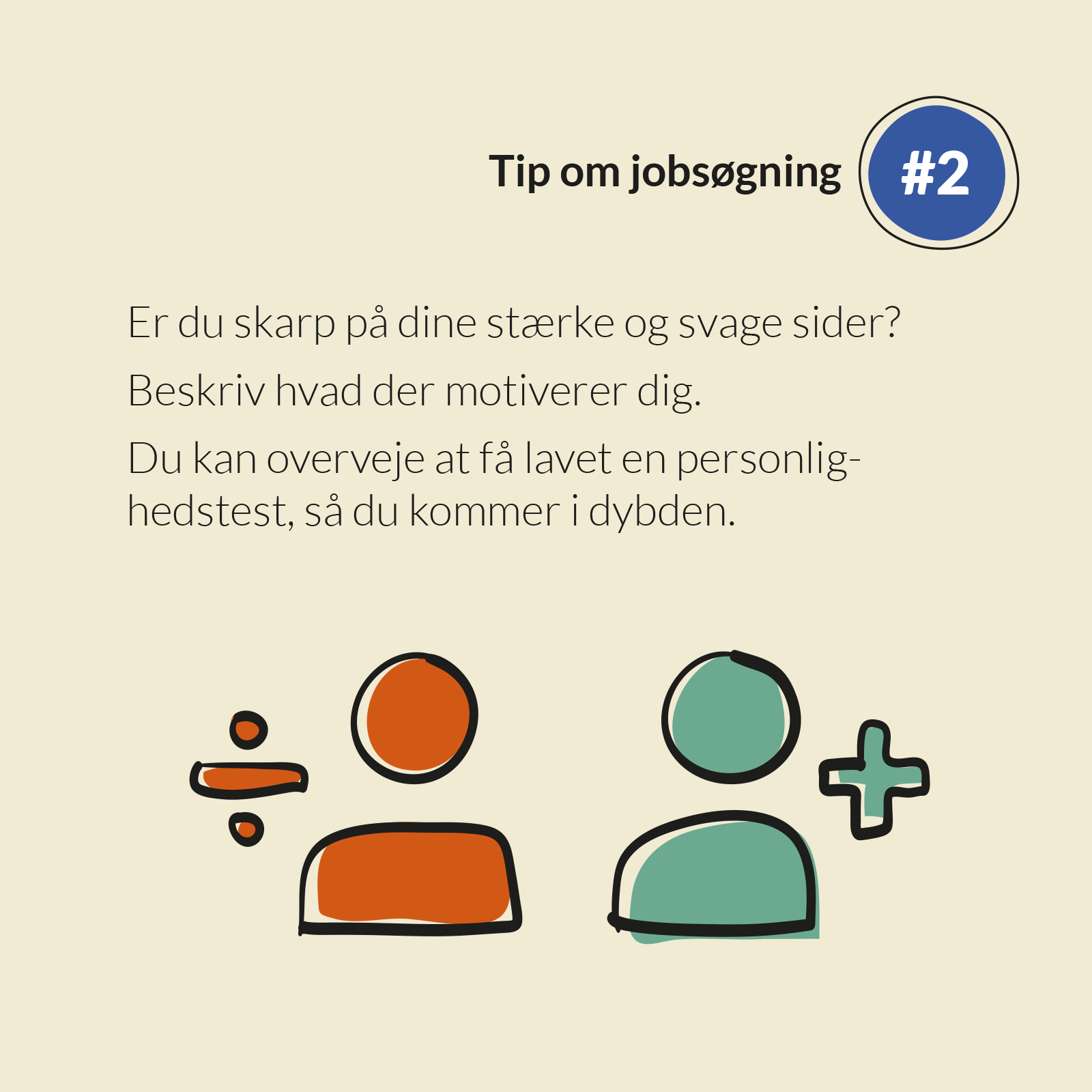 Måske har du prøvet en personlighedstest, der har synliggjort nogle styrker og udfordringer- Har du ikke, kan du overveje, om det er en ide at tage en personlighedstest med opfølgende grundig samtale med en karriererådgiver / headhunter. Du kan læse mere om personlighedstest og karriererådgivning ved at klikke på de fremhævede links.