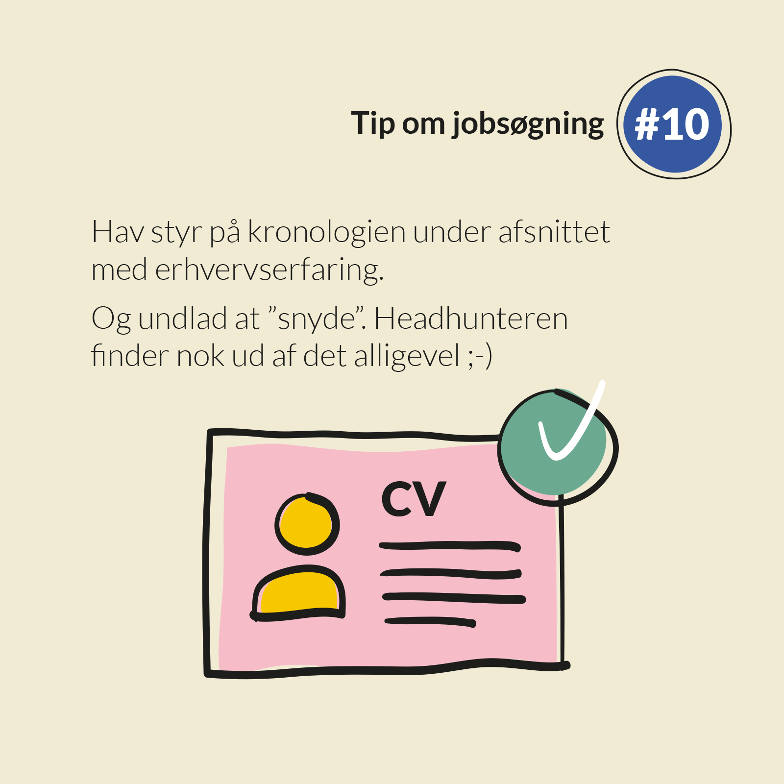 Husk også at anføre lidt om familie, børn, hobbies etc, da det fortæller meget om dig som menneske.