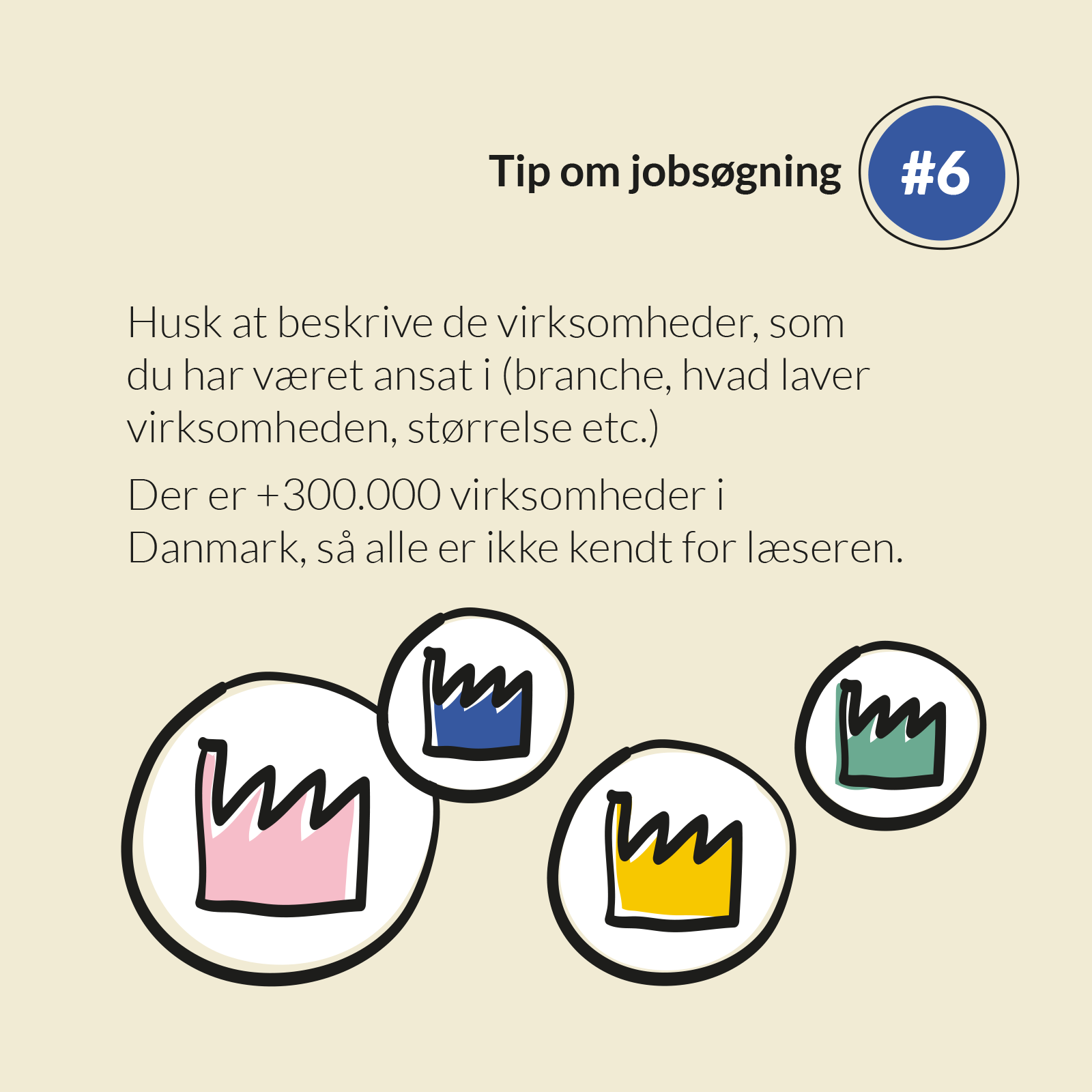 Jeg ser mange CV og Linkedin profiler, og oplever meget ofte, at ansøger ikke beskriver de virksomheder, personen har været ansat i. Der er mere end 300.000 virksomheder i Danmark, så du må ikke tage det for givet, at læseren kender den du er ansat i. Så hjælp læseren lidt på vej med informationer om dine tidligere arbejdsgivere.