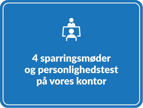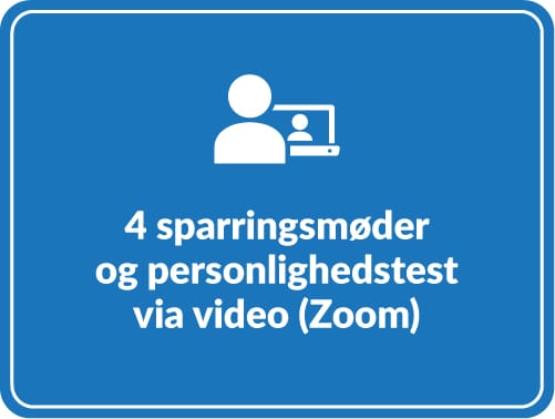 Møde 1: Du har inden mødet online gennemført personlighedstesten NeoPi3. Personlighedstesten afdækker 30 forskellige karaktertræk og kommer således ganske dybt. Første møde er en dialog om resultaterne af personlighedstesten – dvs. afdækning af styrker og udviklingssider, samt forståelse for værdien af at være bevist om egen personlighed og kompetencer såvel fagligt som personligt. Vi gennemgår kort din karriere og taler om din motivation og arbejdsform.